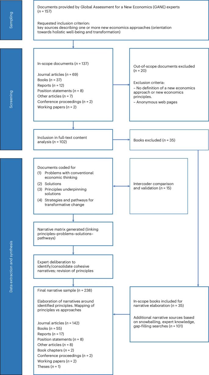 這篇文章綜整來自科學與實務的238份資料,提出跨越38種經濟取向的十項共通原則,作為永續轉型的政策與治理指南。原則涵蓋:尊重行星界線與公正性、處理外部性與再分配、重視公共品與社會基礎、長期與系統視角、包容利害關係人與在地知識、韌性與適應力、以及衡量從GDP轉向多元價值等。作者主張,面對氣候、失衡貿易與生態風險交織的「多重危機」,經濟決策需內嵌生態與社會目標,並以實驗性治理與透明評估加速轉型。此框架可為政府、企業與金融市場提供可操作的決策基準。